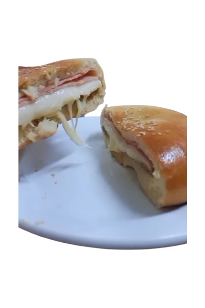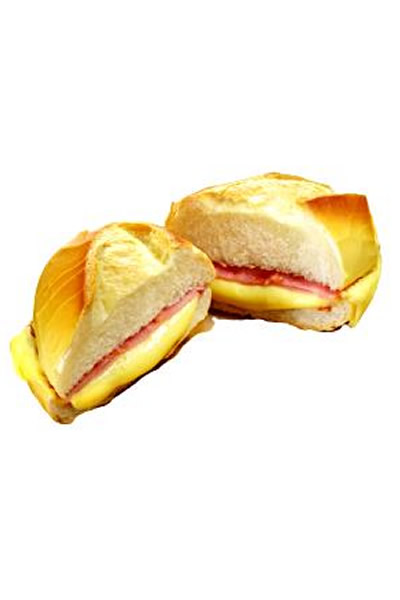 Pão, maionese caseira, presunto e queijo.
