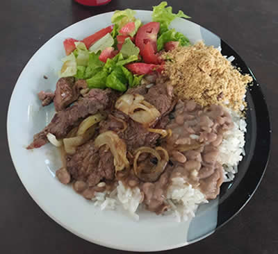 Arroz, feijão, batata frita, bife ou 🐷 bisteca de porco na chapa ou 🐔 filé de frango na chapa ou 🐟 peixe frito a milanesa . 👉 Todos os pratos acompanha uma saladinha de alface, tomate.