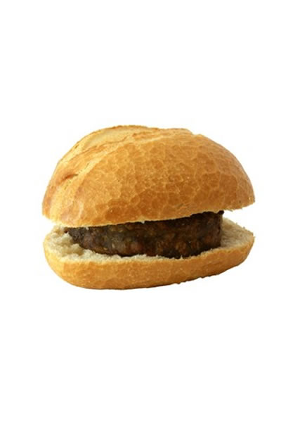 Pão francês ou de hamburguer com um bolinho de carne no meio.