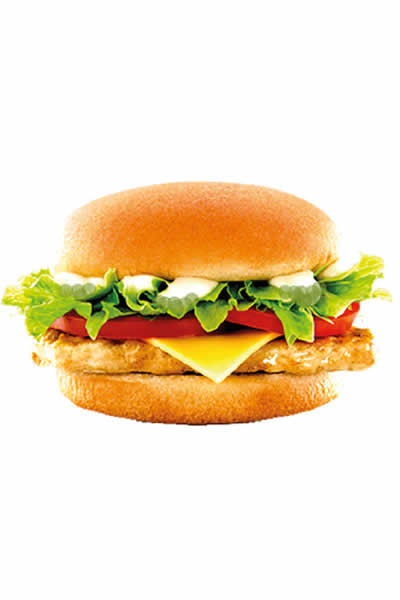 Pão de hamburguer, maionese caseira, frango grelhado, presunto, queijo, alface e tomate.